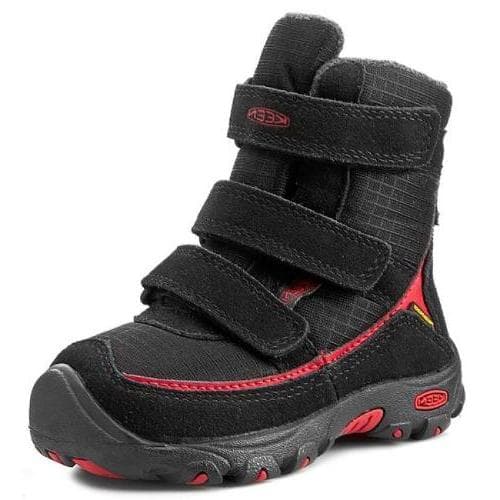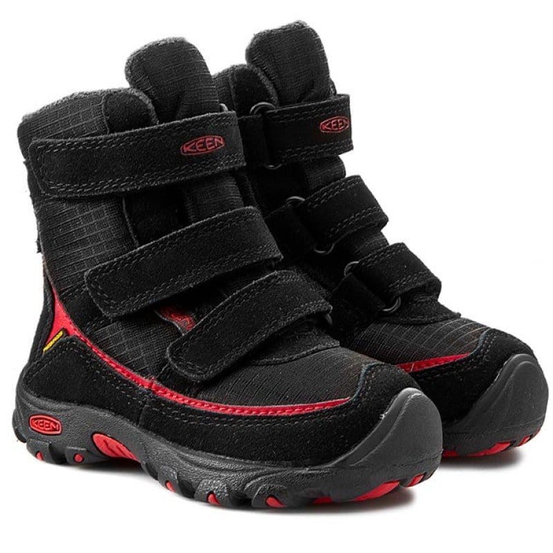 Сапоги-снегоходы Keen Trezzo рассчитаны на самые суровые зимние условия. Верх ботинок изготовлен из замши и текстиля с пропиткой против грязи и воды. Благодаря дышащей мембране ботинки обеспечивают комфортные условия ногам, выводя на поверхность ткани излишки влаги и не позволяя холодному воздуху и снегу проникать вовнутрь. Технологичный утеплитель KEEN.Warm™ с добавлением бамбукового угля надолго сохраняет ноги в тепле. Ребенок сможет играть в снегу, кататься на санках или снегокате не замерзая. Широкий язычок плотно закрывает ногу и фиксируется застежками-липучками. Высокая резиновая подошва не промерзает даже при низких температурах, и не оставляет росчерков при ходьбе в помещении. Голенище высотой 14 сантиметров, надежно укрывает ногу и не позволяет высокому снегу проникать вовнутрь ботинка. Универсальный черный цвет, дополнен яркими красными деталями, которые перекликаются с красными вставками на подошве.
