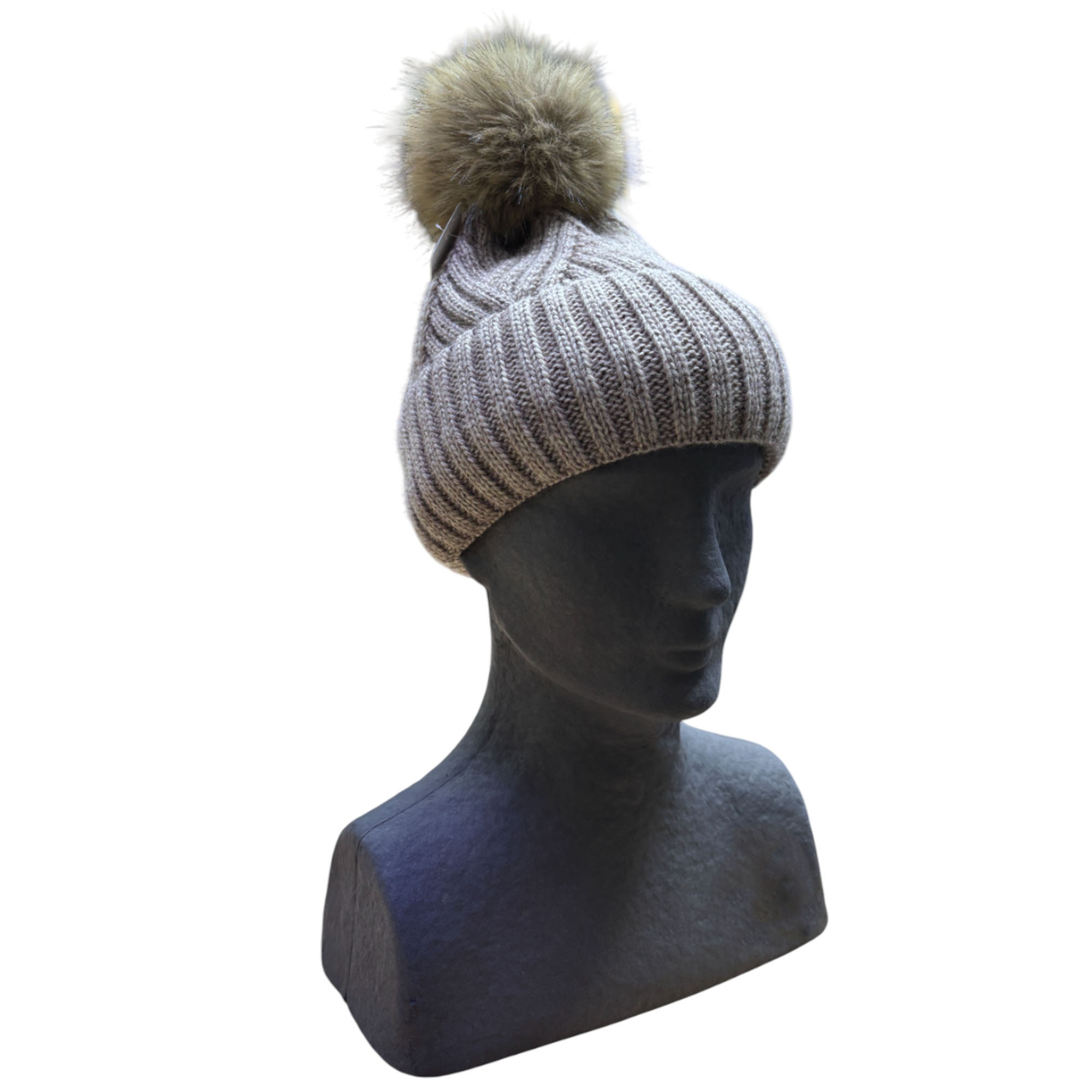 Шапка 14621 с помпоном коричневый